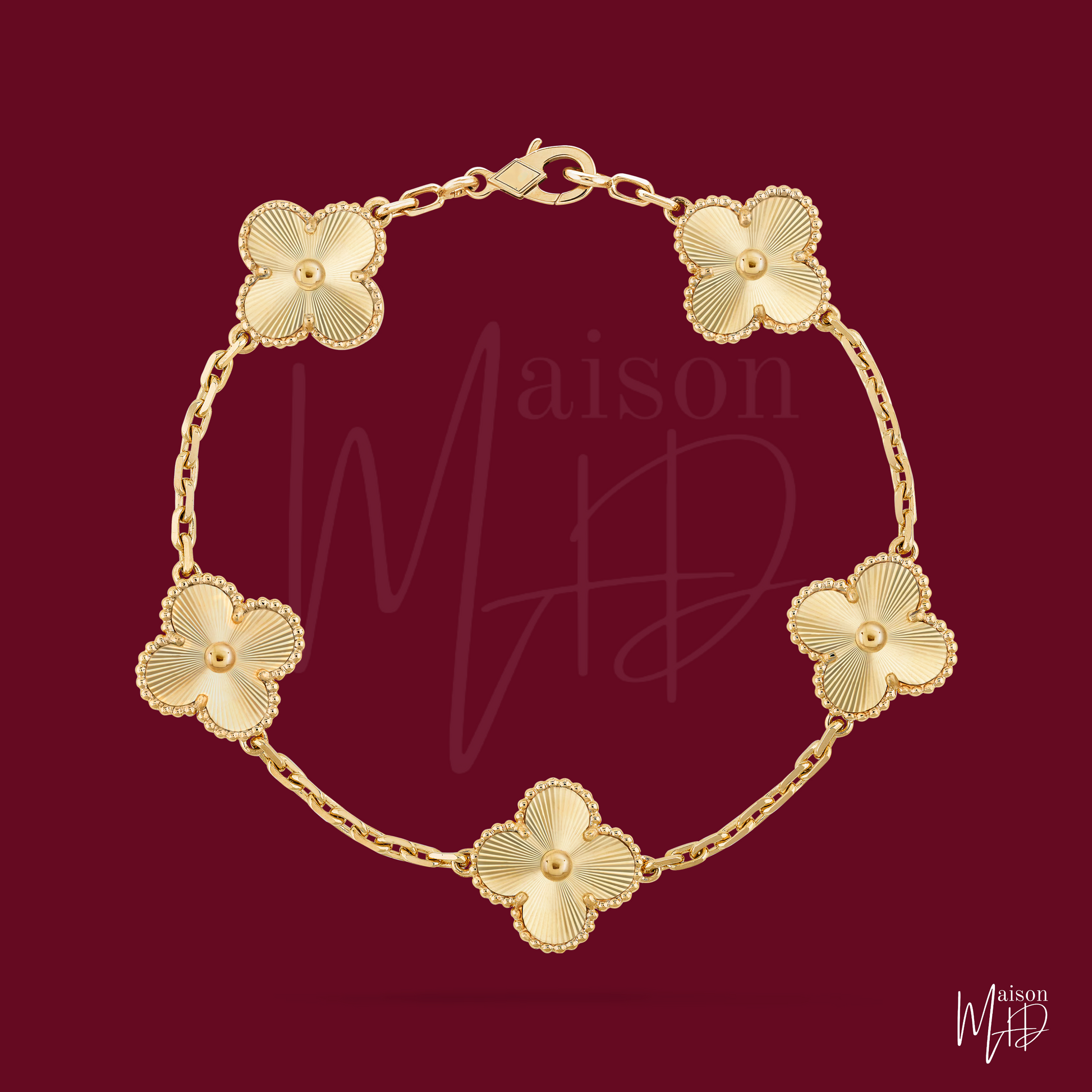 Introducing the Lumière de Lys 5 Flower Bracelet – a radiant charm in our exquisite collection. Crafted from Sterling Silver and adorned with a luxurious 18K gold plating finish, this bracelet captures the essence of timeless beauty. The delicate design showcases five meticulously detailed flowers, each contributing to the allure of this piece.